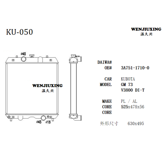 Wenzhou Jiu Xin Business Trading CO.,LTD. was established in June, 2014, is situated one of beautiful cities Wenzhou city is the auto spare parts center. The company persisted throughout take “the technical innovation, the cooperation altogether wins, the good faith highly effective, the service first-class” as serves idea, by high and new technology and brand making enterprise.We have the specialized team and the mature technology, resolves specialized company which into the domestic same profession is second to none.Company's specialized production passenger vehicle, the forklift,transport mixe, the heavy truck and the project mechanical radiator and charge air cooler: