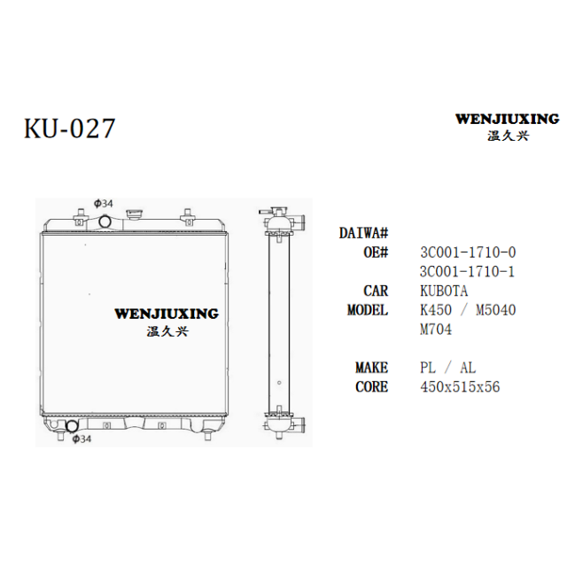 Wenzhou Jiu Xin Business Trading CO.,LTD. was established in June, 2014, is situated one of beautiful cities Wenzhou city is the auto spare parts center. The company persisted throughout take “the technical innovation, the cooperation altogether wins, the good faith highly effective, the service first-class” as serves idea, by high and new technology and brand making enterprise.We have the specialized team and the mature technology, resolves specialized company which into the domestic same profession is second to none.Company's specialized production passenger vehicle, the forklift,transport mixe, the heavy truck and the project mechanical radiator and charge air cooler: