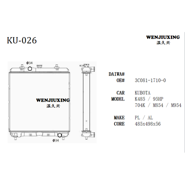 Wenzhou Jiu Xin Business Trading CO.,LTD. was established in June, 2014, is situated one of beautiful cities Wenzhou city is the auto spare parts center. The company persisted throughout take “the technical innovation, the cooperation altogether wins, the good faith highly effective, the service first-class” as serves idea, by high and new technology and brand making enterprise.We have the specialized team and the mature technology, resolves specialized company which into the domestic same profession is second to none.Company's specialized production passenger vehicle, the forklift,transport mixe, the heavy truck and the project mechanical radiator and charge air cooler: