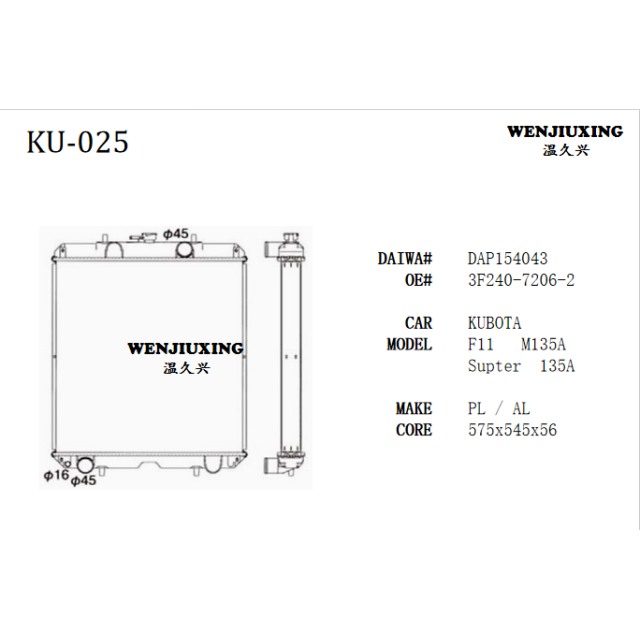 Wenzhou Jiu Xin Business Trading CO.,LTD. was established in June, 2014, is situated one of beautiful cities Wenzhou city is the auto spare parts center. The company persisted throughout take “the technical innovation, the cooperation altogether wins, the good faith highly effective, the service first-class” as serves idea, by high and new technology and brand making enterprise.We have the specialized team and the mature technology, resolves specialized company which into the domestic same profession is second to none.Company's specialized production passenger vehicle, the forklift,transport mixe, the heavy truck and the project mechanical radiator and charge air cooler: