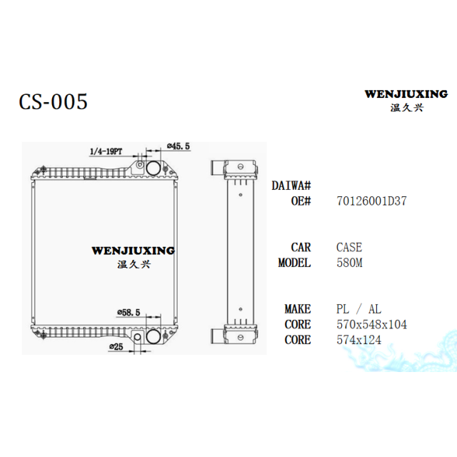 Wenzhou Jiu Xin Business Trading CO.,LTD. was established in June, 2014, is situated one of beautiful cities Wenzhou city is the auto spare parts center. The company persisted throughout take “the technical innovation, the cooperation altogether wins, the good faith highly effective, the service first-class” as serves idea, by high and new technology and brand making enterprise.We have the specialized team and the mature technology, resolves specialized company which into the domestic same profession is second to none.Company's specialized production passenger vehicle, the forklift,transport mixe, the heavy truck and the project mechanical radiator and charge air cooler: