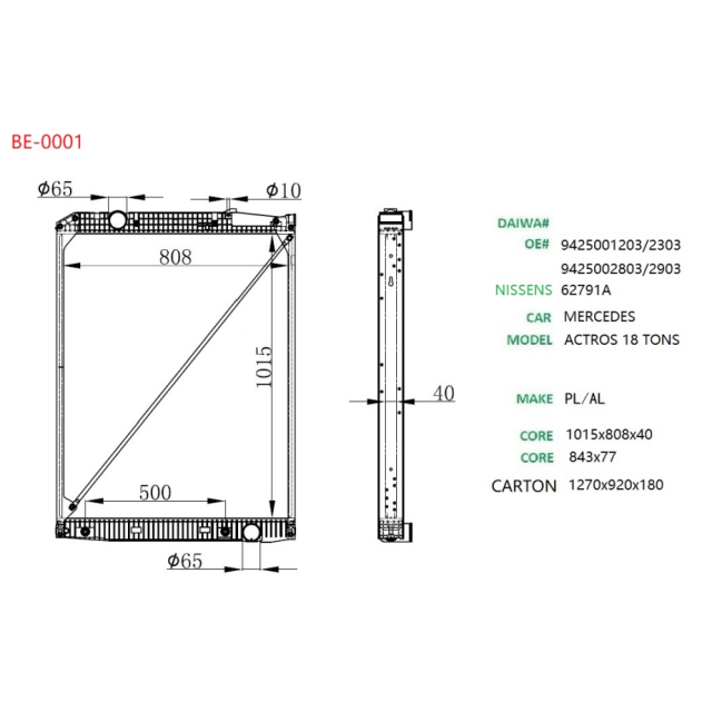 9425001203 2303 9425002803 2903 Suitable for Mercedes-Benz truck radiator