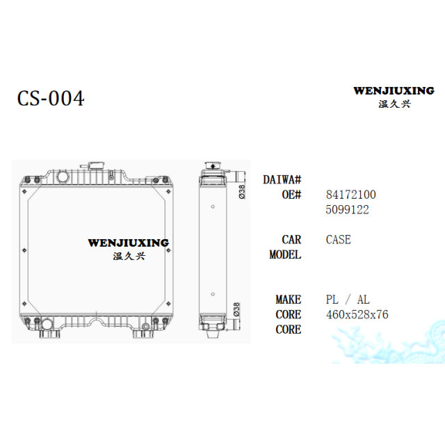 Wenzhou Jiu Xin Business Trading CO.,LTD. was established in June, 2014, is situated one of beautiful cities Wenzhou city is the auto spare parts center. The company persisted throughout take “the technical innovation, the cooperation altogether wins, the good faith highly effective, the service first-class” as serves idea, by high and new technology and brand making enterprise.We have the specialized team and the mature technology, resolves specialized company which into the domestic same profession is second to none.Company's specialized production passenger vehicle, the forklift,transport mixe, the heavy truck and the project mechanical radiator and charge air cooler: