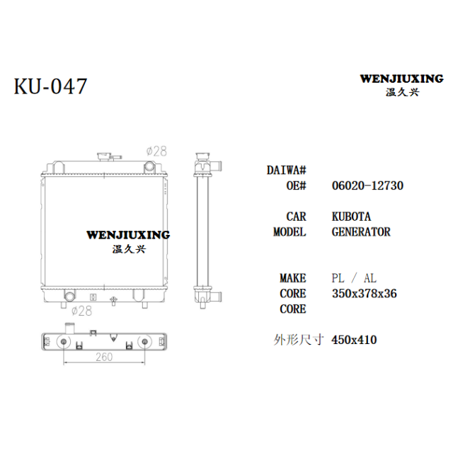 Radiator For Tractor Farm Machinery / 06020-12730 is suitable for Kubota generator radiator