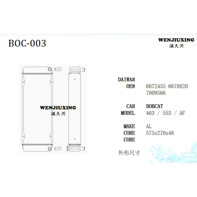 Wenzhou Jiu Xin Business Trading CO.,LTD. was established in June, 2014, is situated one of beautiful cities Wenzhou city is the auto spare parts center. The company persisted throughout take “the technical innovation, the cooperation altogether wins, the good faith highly effective, the service first-class” as serves idea, by high and new technology and brand making enterprise.We have the specialized team and the mature technology, resolves specialized company which into the domestic same profession is second to none.Company's specialized production passenger vehicle, the forklift,transport mixe, the heavy truck and the project mechanical radiator and charge air cooler:
