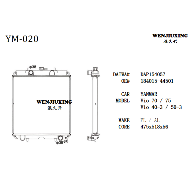 Wenzhou Jiu Xin Business Trading CO.,LTD. was established in June, 2014, is situated one of beautiful cities Wenzhou city is the auto spare parts center. The company persisted throughout take “the technical innovation, the cooperation altogether wins, the good faith highly effective, the service first-class” as serves idea, by high and new technology and brand making enterprise.We have the specialized team and the mature technology, resolves specialized company which into the domestic same profession is second to none.Company's specialized production passenger vehicle, the forklift,transport mixe, the heavy truck and the project mechanical radiator and charge air cooler: